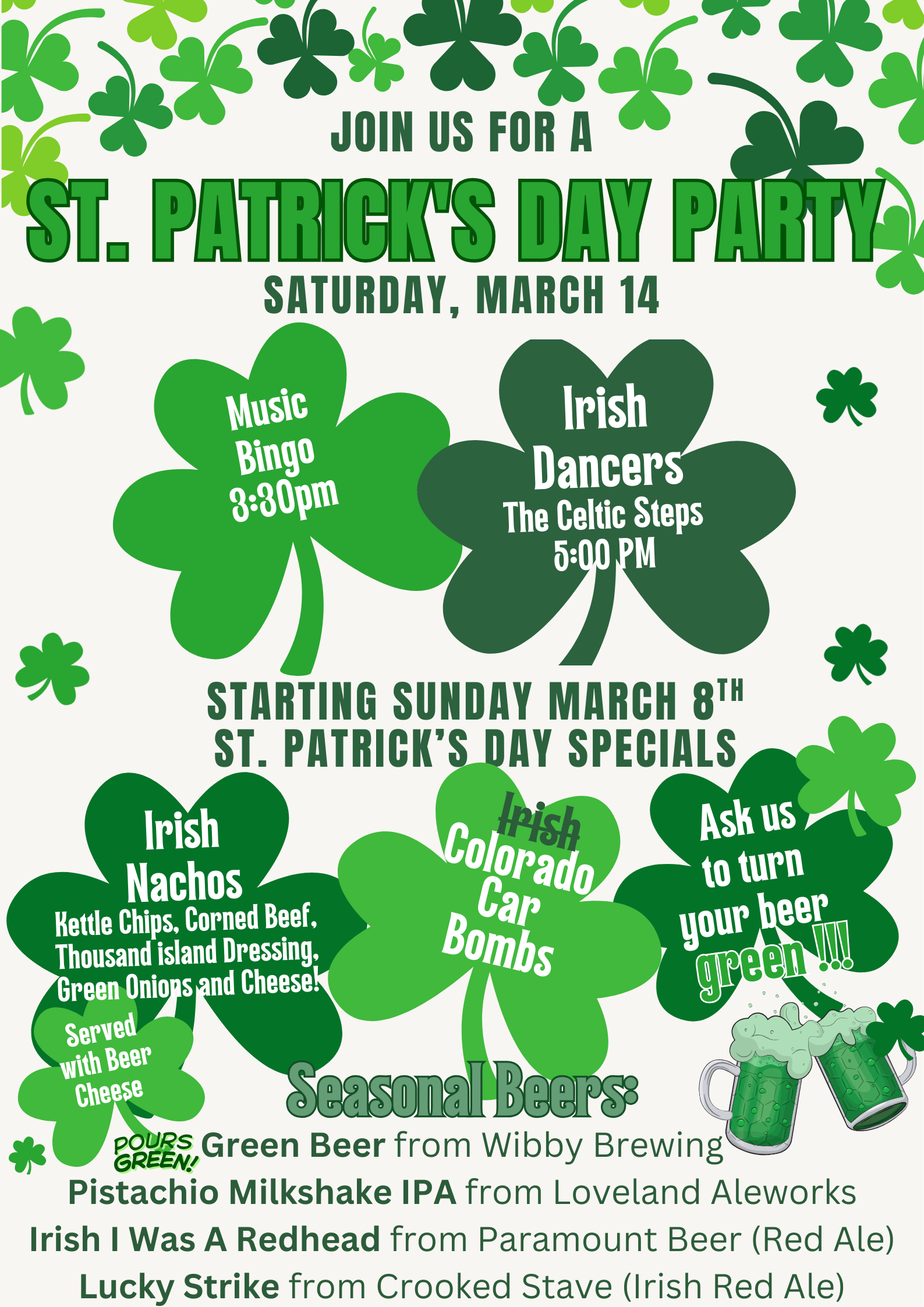 Join us for a lucky day - WEEKEND! We’re celebrating St. Patrick’s Day with seasonal beer, food, and fun and games!