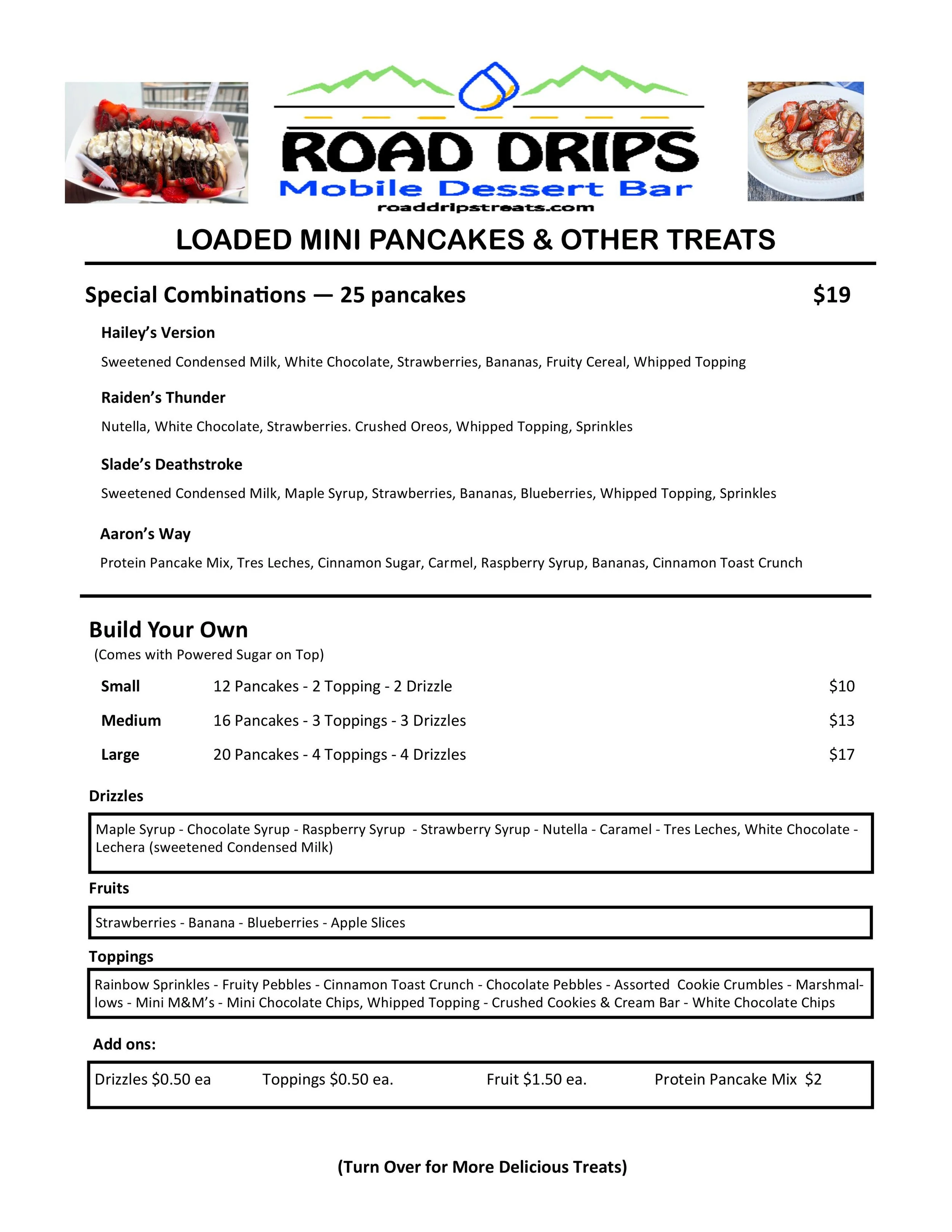 We are a gourmet mini pancake bar with other sweet delicious treats!